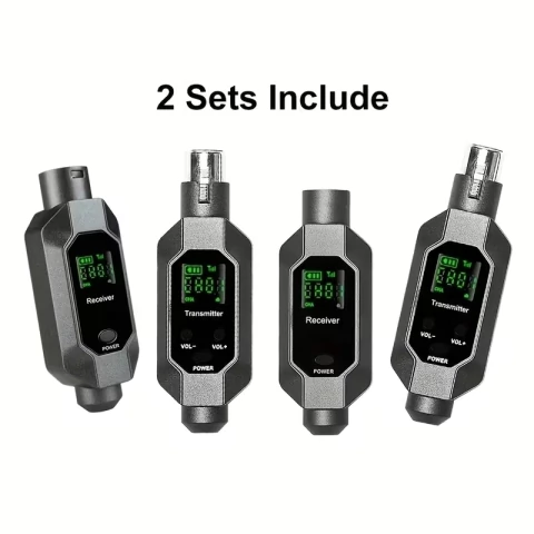 Este pack de 2 juegos de transmisor y receptor XLR inalámbrico es ideal para convertir tus micrófonos dinámicos en sistemas sin cable, sin necesidad de varillas ni receptores externos. Con tecnología 2.4 GHz, función de bloqueo ID y batería recargable, ofrece una solución profesional, confiable y libre de interferencias para escenarios, estudios y eventos.